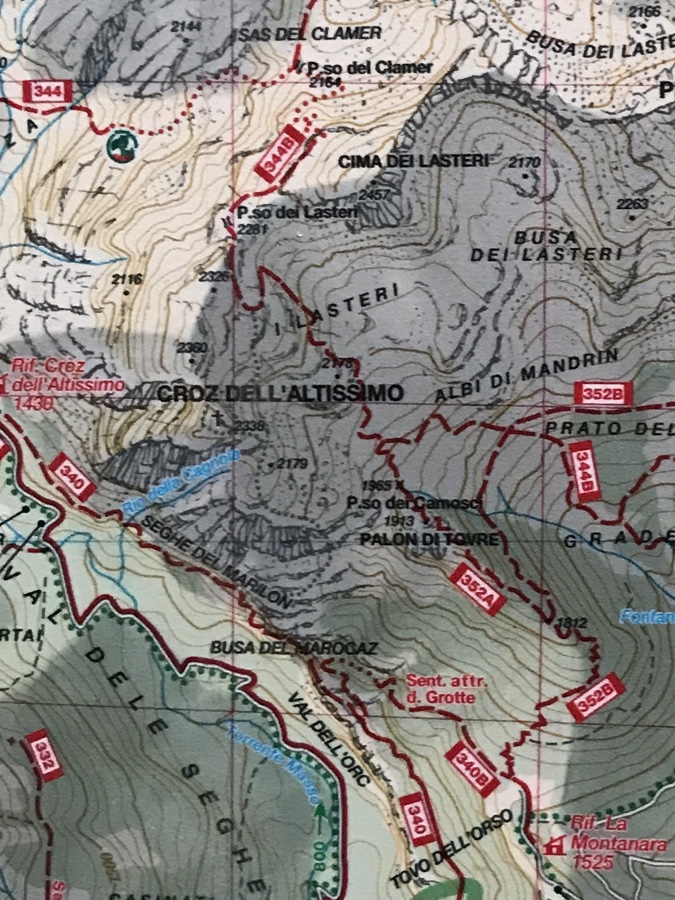 Heute eine (für uns) anstrengende steile Bergtour gemacht. Kein Gipfel aber mit Kletterpassage und vom Passo dei Lateri eine schöne Sicht auf die Brenta genossen.