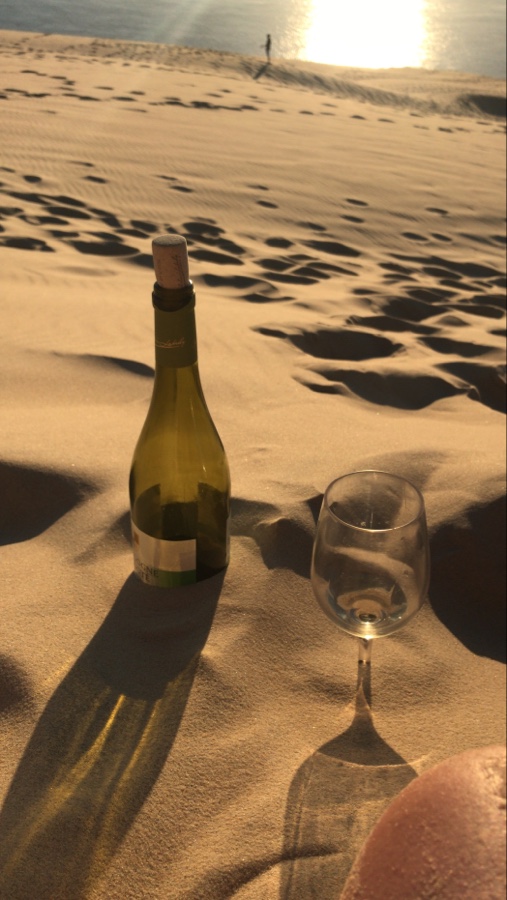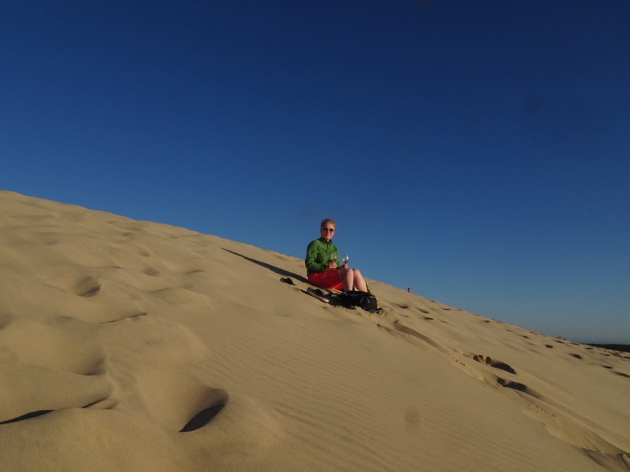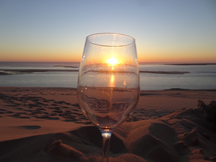 Am Abend natürlich wieder die Düne hoch und den Sonnenuntergang bei einer Flasche Wein genossen.