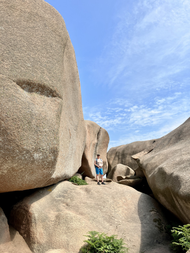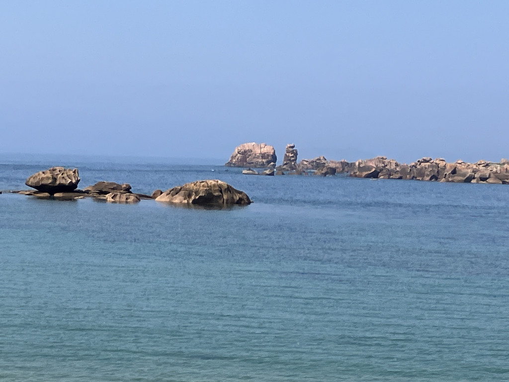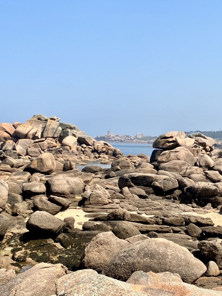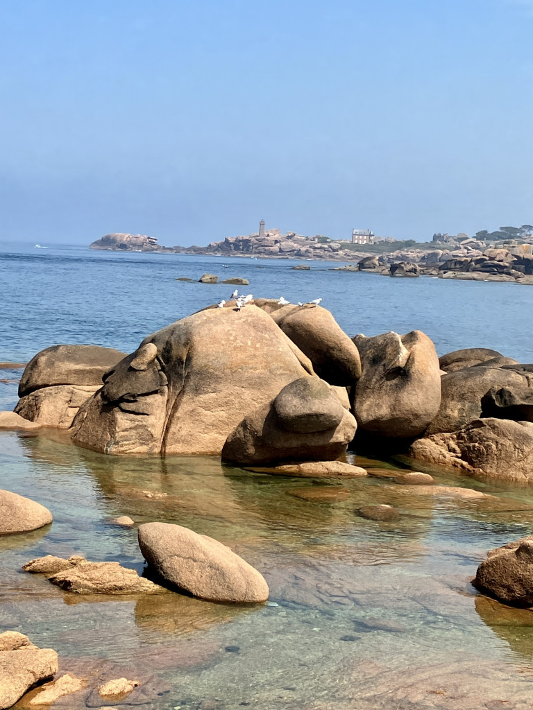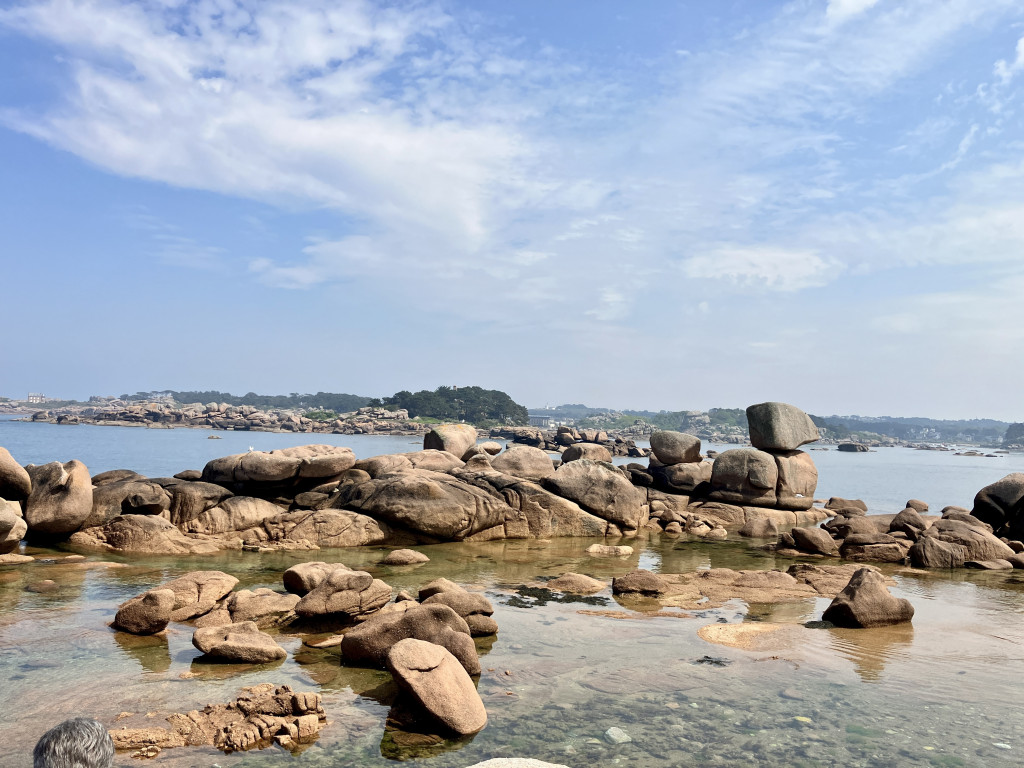 Hier sieht man die typischen roten Granitfelsen dieses Küstenabschnittes. Und heute Nachmittag haben wir diese sogar ohne Nebel gesehen.