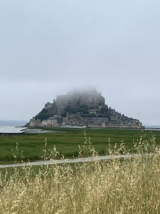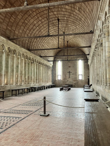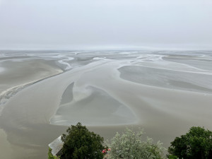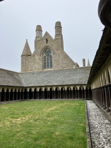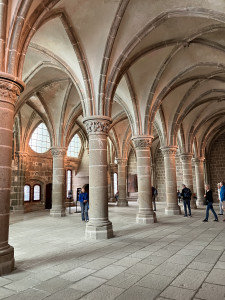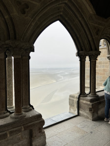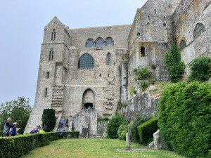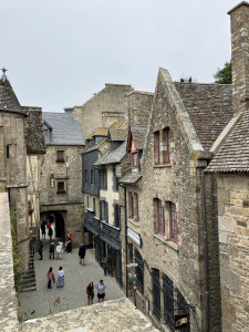 Der Monte Saint-Michel hinterlässt schon von weitem einen bleibenden Eindruck, auch wenn die Sicht heute schlechter war als gestern. Die Insel liegt in einer Bucht ca. einen Kilometer vom Festland entfernt und ist über eine Brücke zu erreichen. Über ein Eingangstor erreicht man die untere Stadt voller Touristenläden und Restaurants. Nach einigen Höhenmeter, dann die eigentliche Abtei.